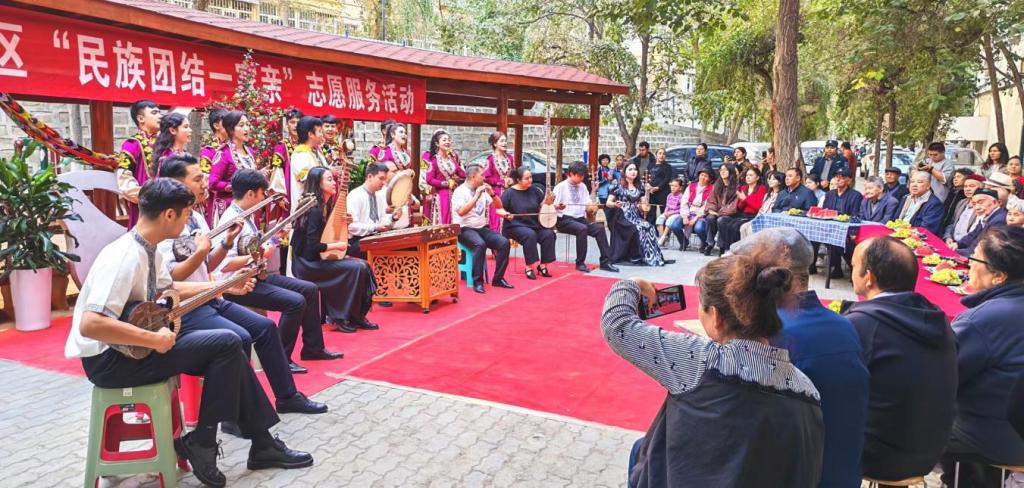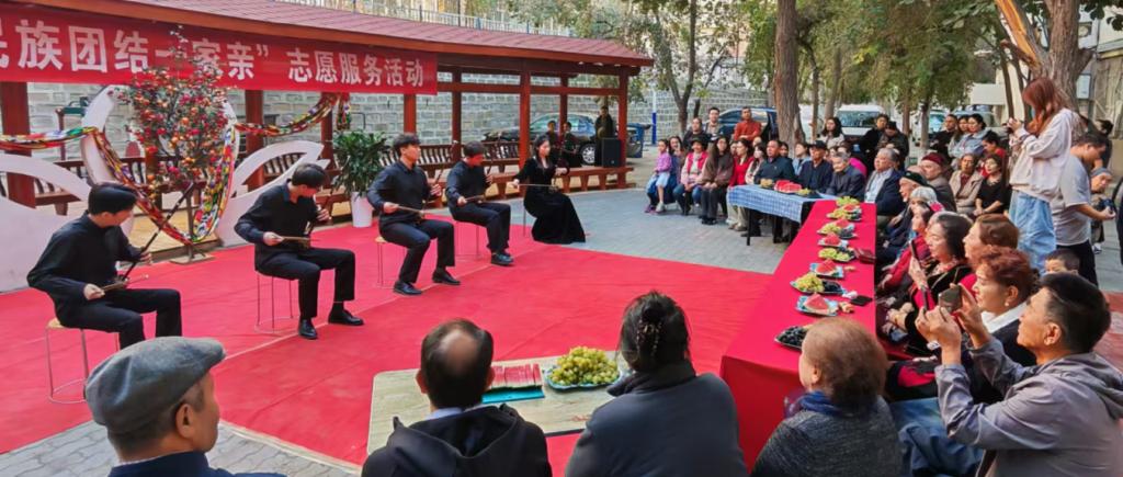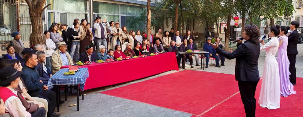 9月17日,新疆艺术学院“文化润疆·艺心铸魂”高雅艺术进校园、展演服务下基层活动第二站,走进乌鲁木齐市天山区南湾街街道延安路社区。